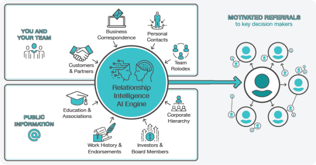 Referral-AI ermöglicht es Benutzern, kritische Ziele und Entscheidungsträger über motivierte Empfehlungen von Kollegen, Partnern, Investoren und Vorstandsmitgliedern zu erreichen. Motivierte Empfehlungen sind von Natur aus motiviert, mit einem freundlichen Vorschlag zu helfen.