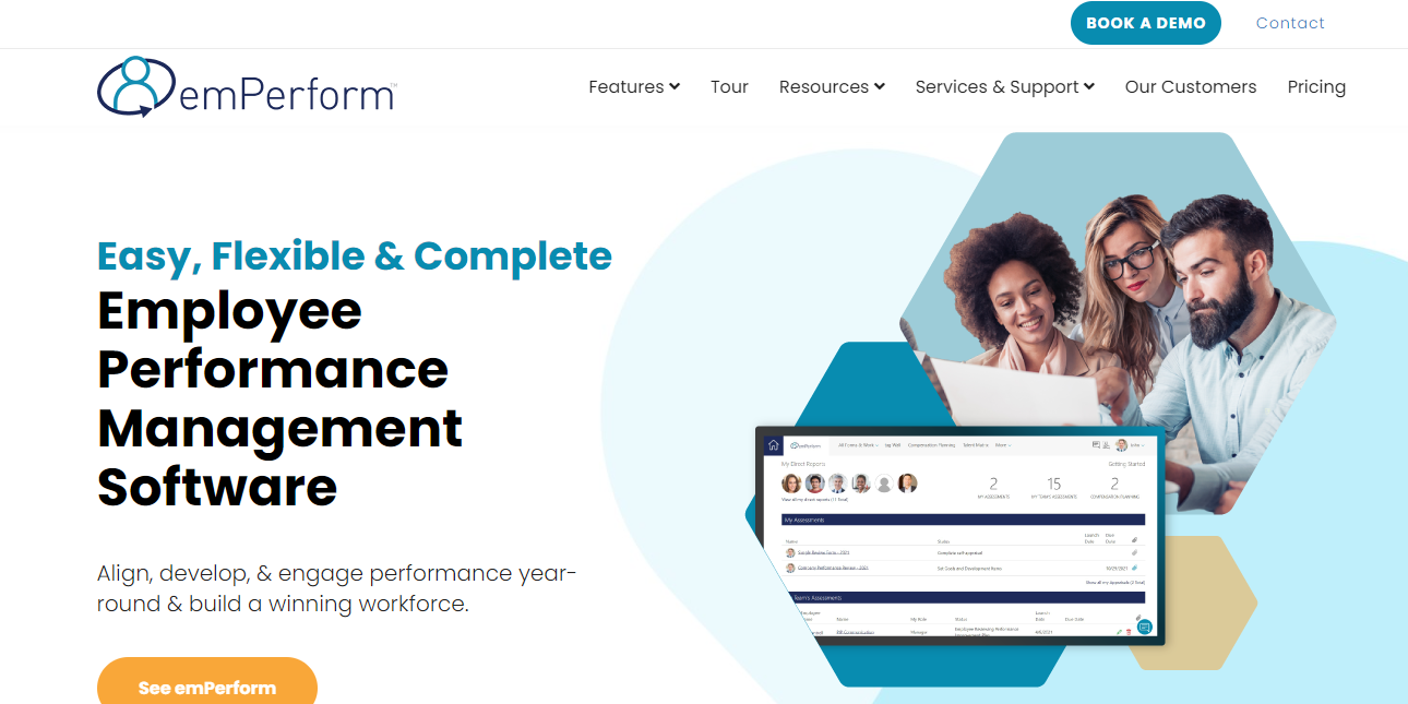 emPerform ist eine umfassende Leistungsmanagementsoftware, die den Prozess der Mitarbeiterbewertung und -entwicklung vereinfacht.Mit emPerform können Unternehmen mühelos Leistungsziele festlegen, regelmäßige Beurteilungen durchführen und kontinuierliches Feedback geben.Es bietet 360-Grad-Feedbackfunktionen und ermöglicht so eine ganzheitliche Sicht auf die Mitarbeiterleistung.