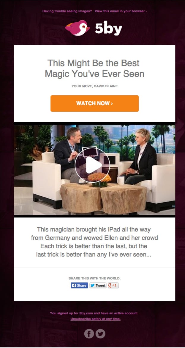 5by schickte diese E-Mail mit dem Betreff „Wenn Sie sich dieses Wochenende ein Video ansehen, machen Sie es zu diesem.“