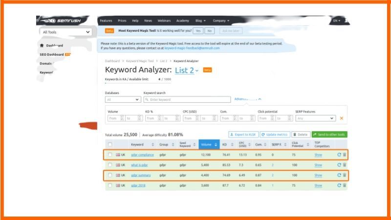 Auf dieser Plattform können Sie mit wenigen Klicks herausfinden, wie viele Keywords Sie mit Ihren Mitbewerbern gemeinsam haben. Sie können jetzt Ihre Taktik verfeinern, um Aktien Ihres Konkurrenten aufzufressen.