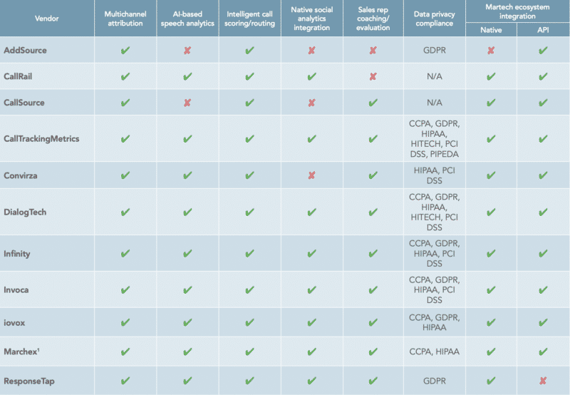 Entdecken Sie die Plattformfunktionen von Anbietern wie CallRail, Invoca, CallSource, DialogueTech und mehr im vollständigen MarTech Intelligence Report zu Anrufanalyseplattformen für Unternehmen .