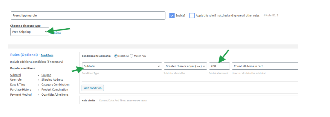 Sie können auch kostenlosen Versand basierend auf Bedingungen erstellen.