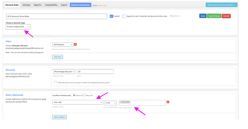 Dieser erweiterte Coupon kann sowohl auf Warenkorb- als auch auf Produktebene generiert werden. Sie können diesen erweiterten Coupon auch für Ihre Einzel- und Großhändler erstellen, indem Sie die entsprechende Benutzerrolle auswählen.