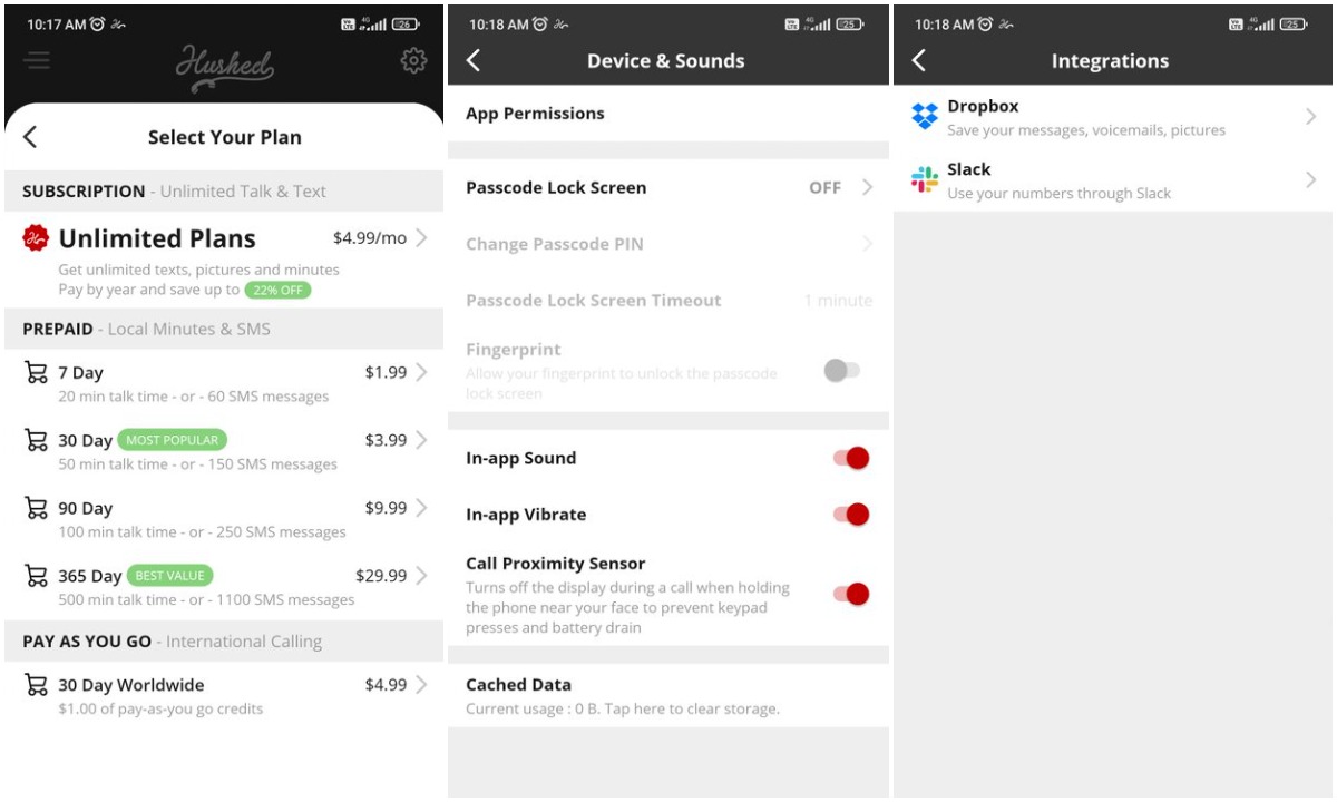 Hushed bietet eine breite Palette von Preisplänen zur Auswahl.