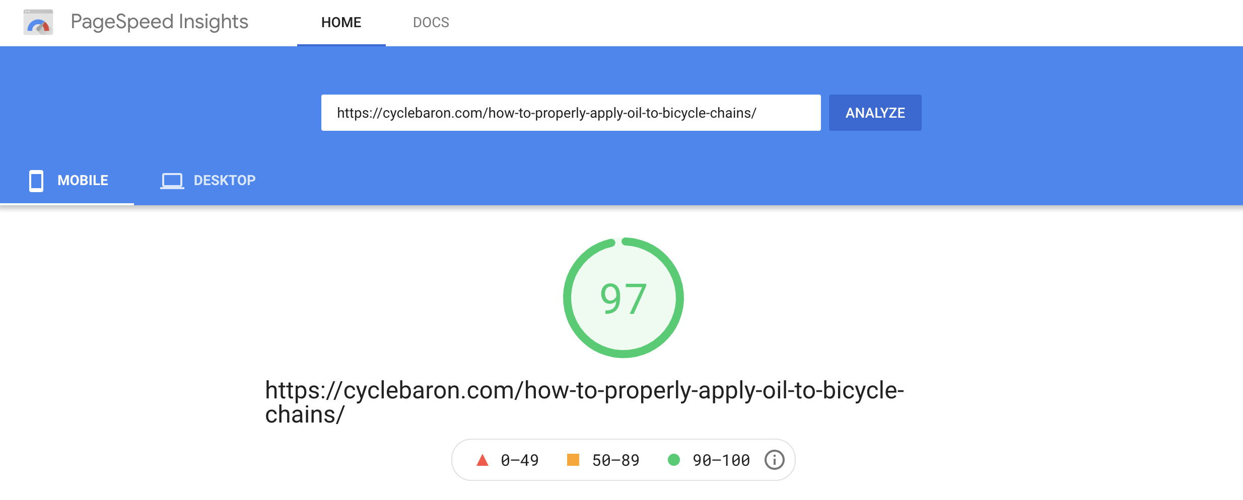 Ich behalte Cyclebaron.com auf Bluehost, weil Cyclebaron.com eine Demoseite ist. Die meisten Leute, die anfangen, sollten kein teures Hosting bezahlen. Da Cyclebaron.com auch gute Pagespeed-Scores erzielt, dient es als Beispiel aus der Praxis, dass Sie mit kostengünstigerem Hosting gute Pagespeed-Scores erzielen können.