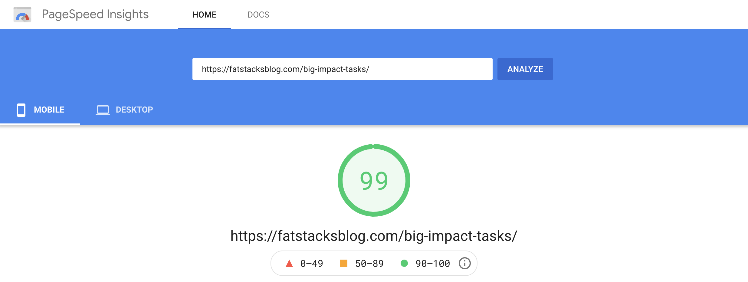 Und ja, die meisten meiner Blogposts auf meinen Nischenseiten haben jetzt Pagespeed-Werte in den 90ern. Sogar Fat Stacks, das kniffliger war als andere Seiten, weil es mehr Plugins als meine Nischenseiten hatte. Allerdings hatte ich sehr gute Ergebnisse, bevor ich zu Rocket.net wechselte, aber sie verbesserten sich durch den Wechsel noch mehr. Hör zu: