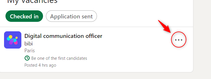 Für jeden Post im Abschnitt verfügbare Jobs finden Sie 3 Punkte, wenn Sie darauf klicken, haben Sie 4 Optionen: