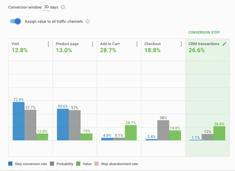 Google Analytics 360 bietet ein zuverlässigeres datengesteuertes Attributionsmodell. Seine Berechnungen verwenden Informationen, die in Google Analytics gesammelt wurden, und der Wert der Konvertierung wird von der Quelle gemäß dem Shapley-Vektor verteilt.