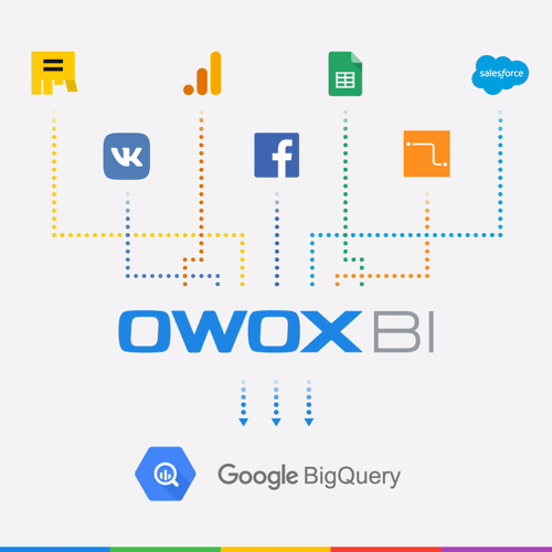 OWOX BI erstellt Berichte basierend auf Daten, die in Google BigQuery hochgeladen wurden, darunter: