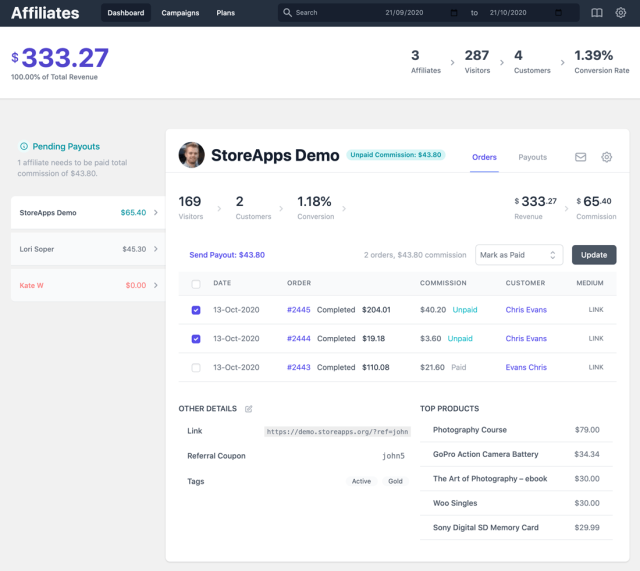 Mit diesem WordPress-Plugin (das keine eigenständige Empfehlungssoftware wie die anderen ist) können Sie ein profitables Partnerprogramm auf Ihrer Website einrichten. Das Plugin hat eine einfache Benutzeroberfläche mit einfachen Einstellungen, sodass selbst unerfahrene Benutzer es schnell konfigurieren können. Benutzer können sich als Partner bei Ihrem Geschäft anmelden und einzigartige Empfehlungslinks teilen, um eine Provision zu verdienen. Das Plugin erleichtert es Unternehmen auch, Affiliate-Beziehungen und Provisionssätze zu verfolgen und zu verwalten.