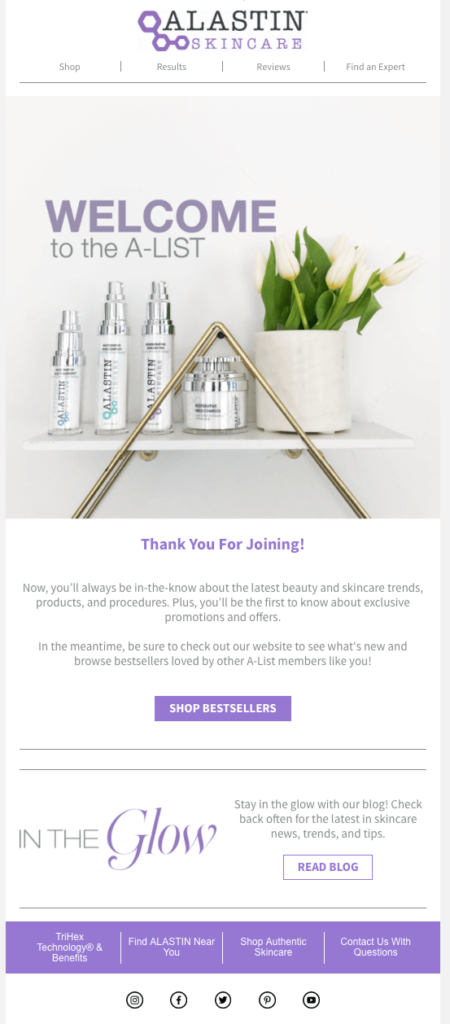 - Ein weiterer CTA bietet Abonnenten über den Blog der Marke Zugang zu den neuesten Hautpflegetipps und -trends und hält sie so mit der Marke in Verbindung.