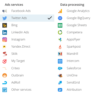 Mit OWOX BI dauert es beispielsweise nur Sekunden, um Kosten-, Klick- und Impressionsdaten aus Ihren Twitter-Kampagnen in Google Analytics zu importieren und zu analysieren. Führen Sie sie mit Kosten- und CRM-Daten zusammen und Sie haben die umfassendste Basis für Ihre Analyse.