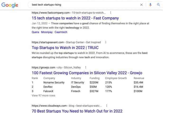 Fühlen Sie sich frei, auf Google nach den besten Technologieunternehmen oder Startups im Technologiebereich zu suchen.