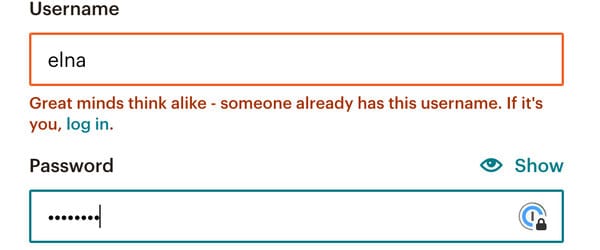 Hier ist ein Beispiel für eine Mikrokopie von MailChimp: