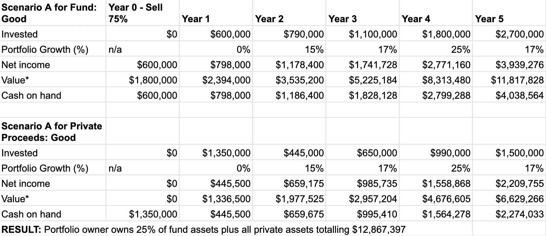 Ein interessanter Aspekt ist, wie wichtig es ist, so viel wie möglich von den Erlösen zu reinvestieren. Dies trägt maßgeblich zur Wertsteigerung des Portfolios bei. Dies macht sich besonders in der dritten Analyse (Keep the Portfolio Private) unter den 7% jährlichem Wachstum bemerkbar. Beachten Sie die große Bewertung nach 5 Jahren, indem Sie einfach einen Großteil des Erlöses reinvestieren.
