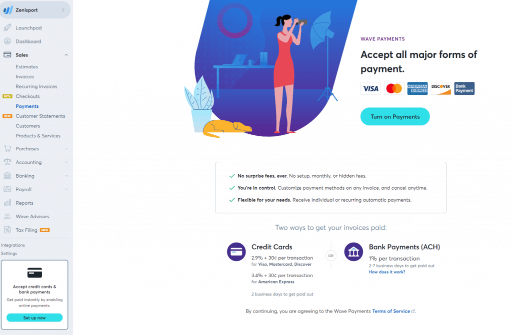 Wave Payments ist ein Kreditkartenverarbeitungsdienst, der von Wave angeboten wird, einer Marke, die traditionell mit Buchhaltungssoftware für Freiberufler und Auftragnehmer in Verbindung gebracht wird.