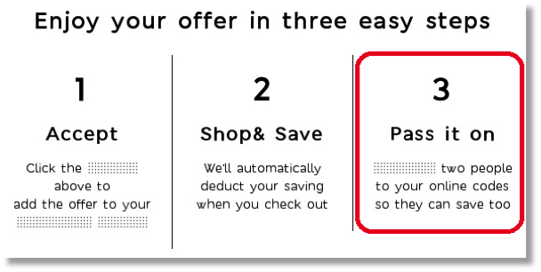 Unsere branchenführenden Absender überindizieren diese Metriken ständig. In diesem cleveren Beispiel von Marks & Spencer, sind Abonnent incentivised einen speziellen Online - Rabatt - Code mit zwei anderen Personen zu teilen, und die Preise für diese Aktion weitergeleitet werden 33X den Durchschnitt zitierte in Hidden Metrics des Return Path von E - Mail - Zustellbarkeit Bericht.
