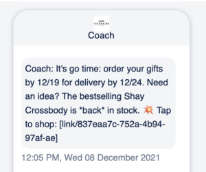 - Notificaciones de reposición (como el siguiente ejemplo de Coach)