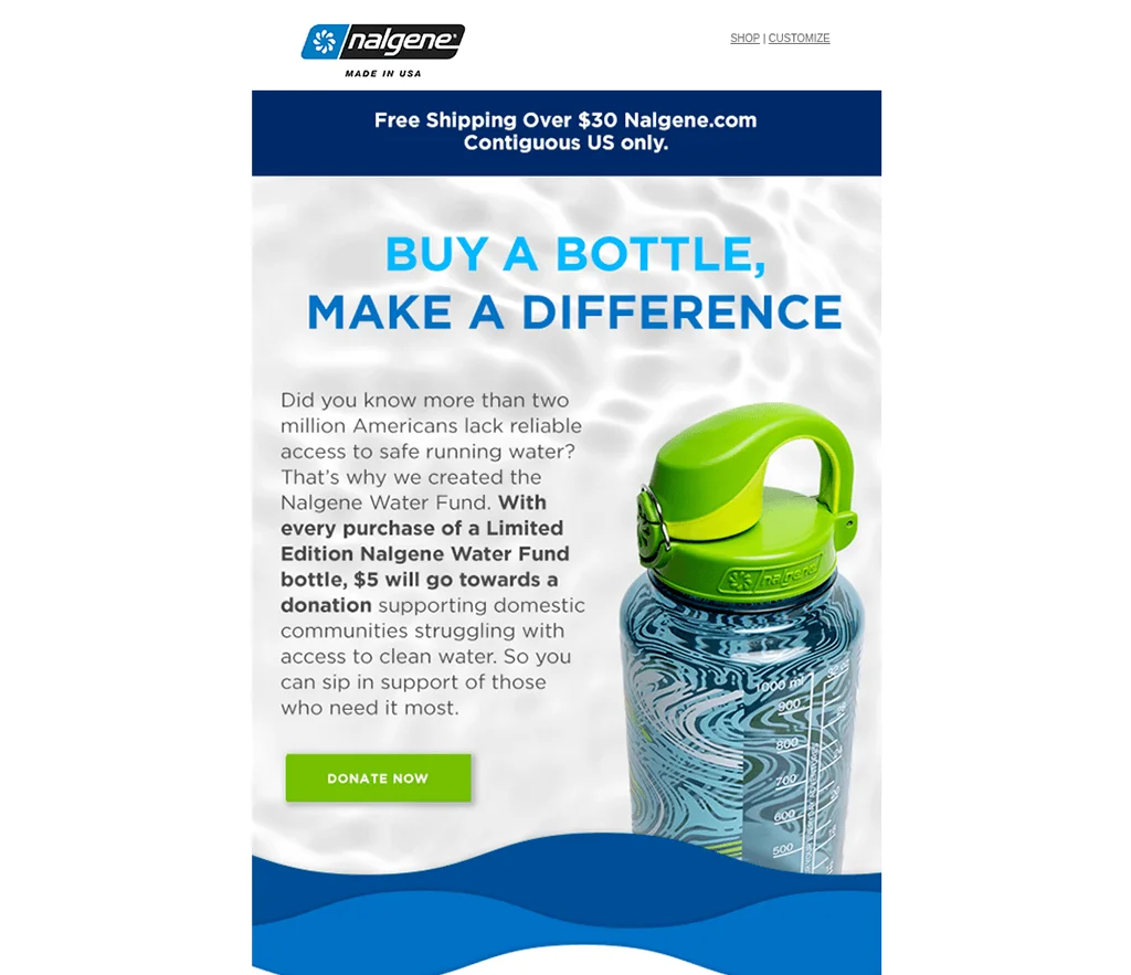 Tanto el color azul como el verde se asocian a menudo con la frescura y la limpieza, por lo que la marca de botellas de agua Nalgene los utiliza con fines de marketing. Esto es posible ya que el propio producto utiliza estos colores y se muestra en la plantilla.