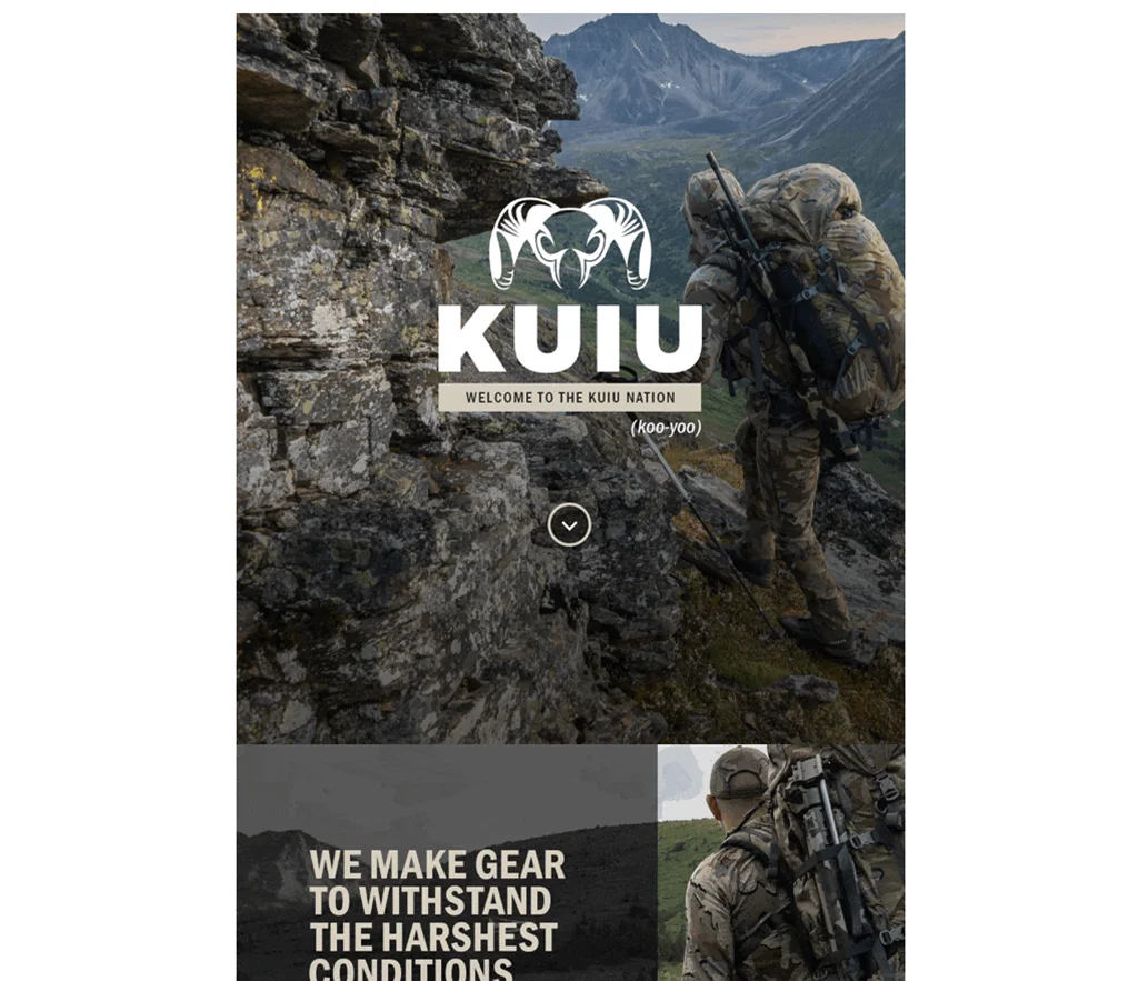 Para una empresa que diseña equipos para exteriores, KUIU utiliza imágenes del aire libre para su campaña de correo electrónico con buenos resultados. Toda la plantilla está dividida en varias secciones, que comprenden imágenes bien seleccionadas. Algunas de estas imágenes muestran los productos que los clientes pueden comprar en el sitio web.