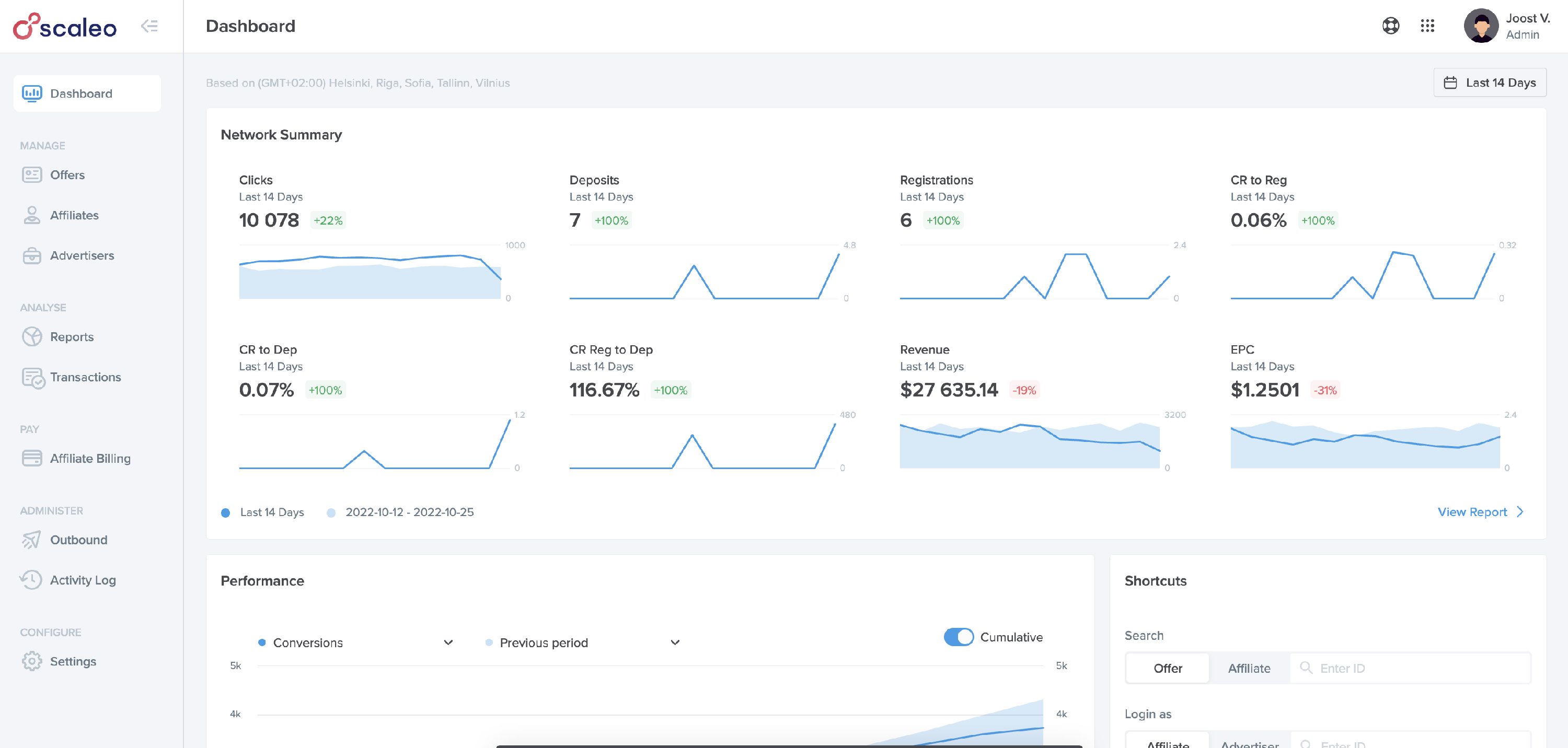 Scaleo proporciona a los anunciantes informes en tiempo real sobre el rendimiento de su programa de afiliados, incluida la cantidad de clics, conversiones y ganancias. Esto permite a los anunciantes tomar decisiones basadas en datos para optimizar continuamente el rendimiento de su programa de afiliados.