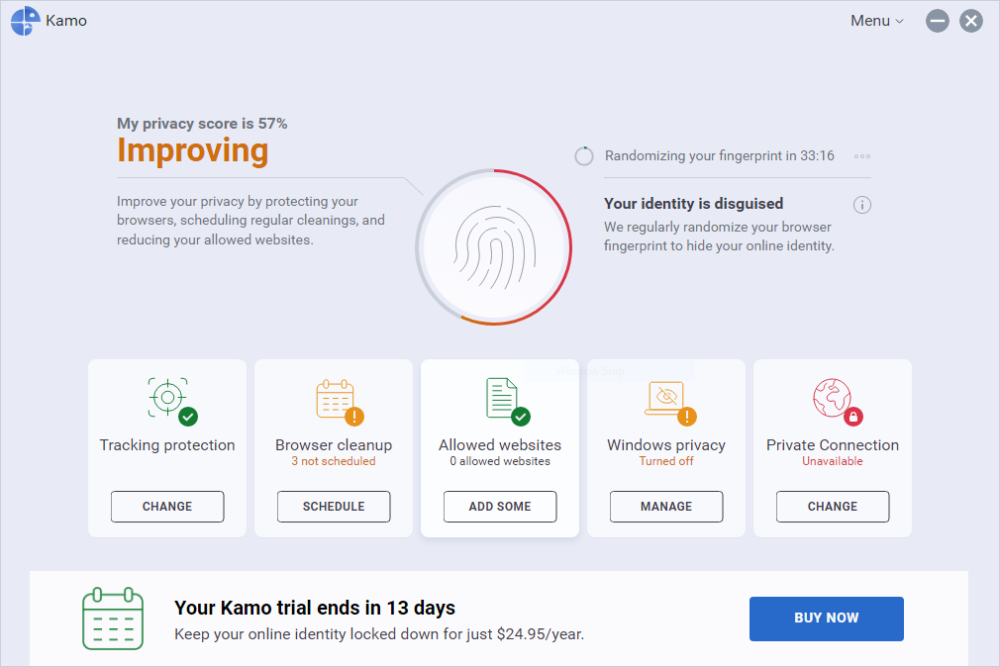 Kamo es del mismo equipo de desarrolladores que administra CCleaner, Recuva, etc. Esto aborda todos los aspectos de su PC que pueden afectar su privacidad.