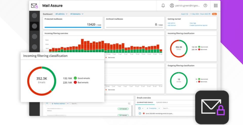 N-able Mail Assure viene con cifrado fuerte y ofrece archivado de correo electrónico a largo plazo junto con almacenamiento ilimitado. Tiene muchas tecnologías de filtrado que bloquean alrededor de mil millones de mensajes de spam cada mes.