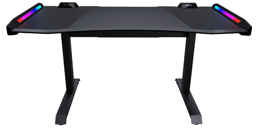 Los efectos de iluminación RGB y el excelente diseño le brindan una experiencia de juego completamente asombrosa. La parte superior de fibra de carbono del escritorio proporciona suficiente espacio para instalar dos monitores de 27 pulgadas con facilidad, junto con otros equipos de juego en la parte superior. Los bordes curvos y las esquinas redondeadas son muy útiles ya que sus muñecas ya no colgarán en ángulos incómodos.