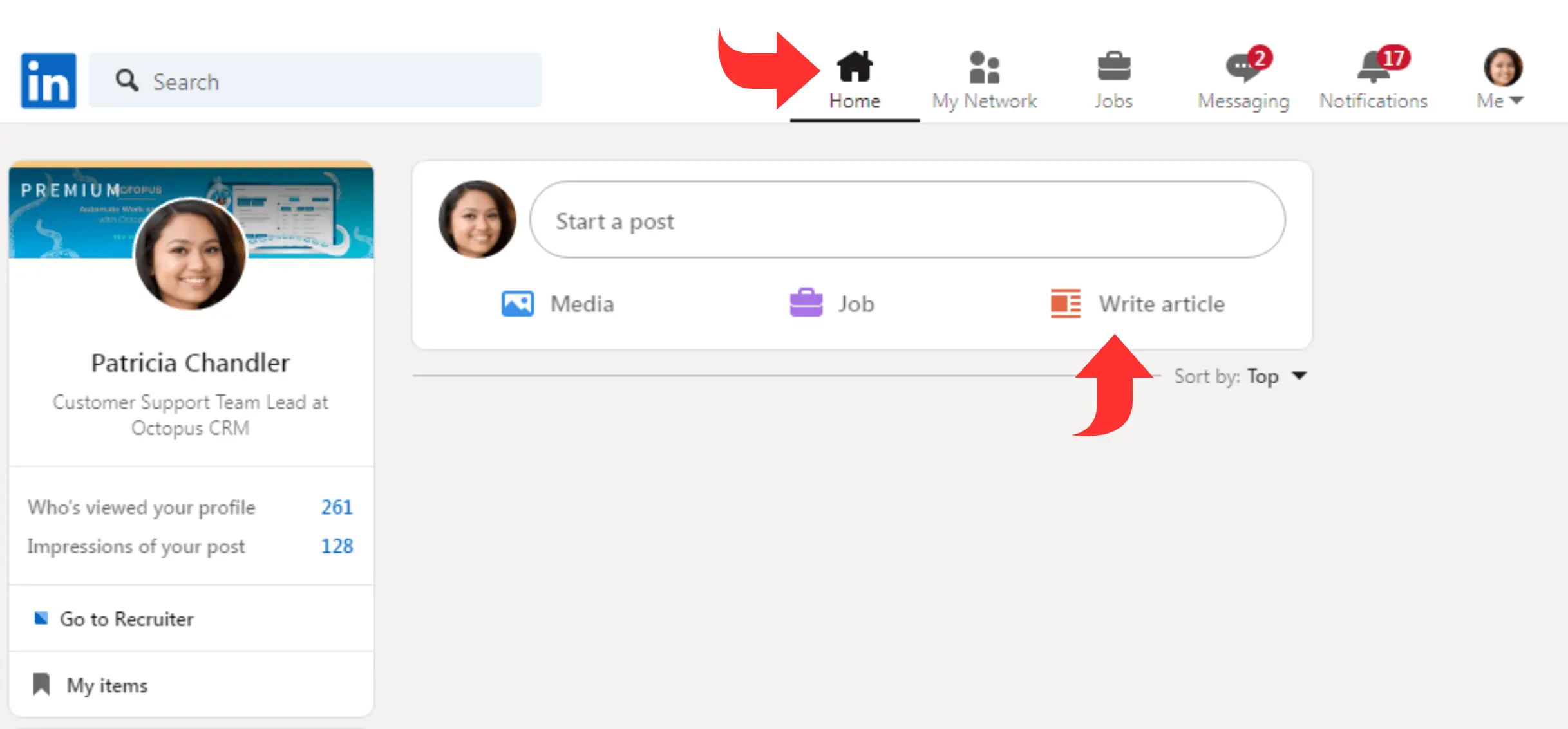 - Haga clic en "Escribir un artículo" para abrir el editor de blogs de LinkedIn.