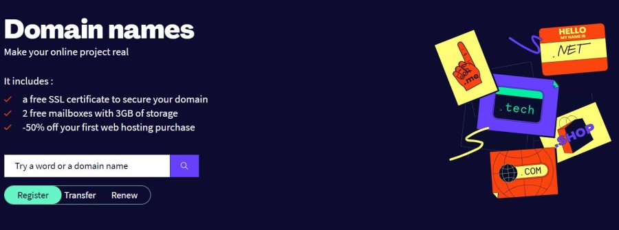 Gandi ofrece una función de renovación automática para sus nombres de dominio para que pueda renovar sus dominios antes de que caduque y evitar que alguien más lo tome. En caso de que ya tenga un nombre de dominio, Gandi también lo ayuda a transferir el dominio a su plataforma.