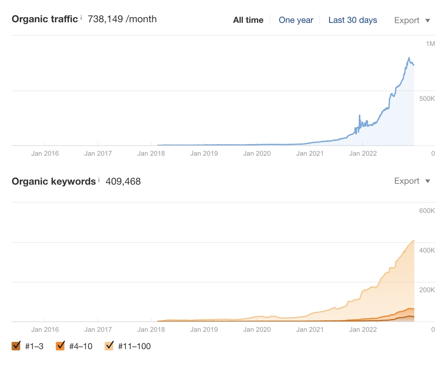 Y esa cantidad de contenido resultó en un aumento en el tráfico de su blog.