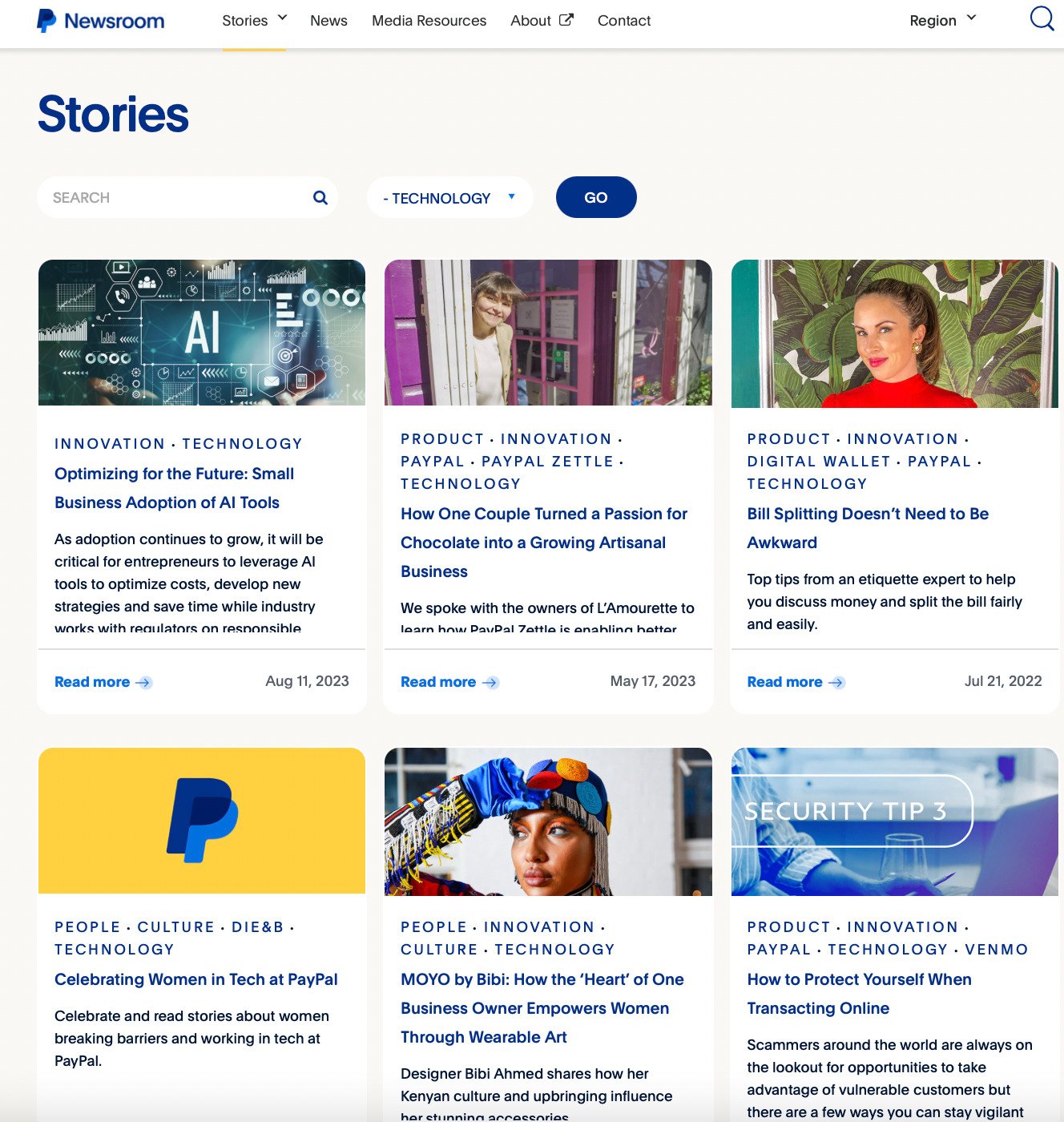 El enfoque de la popular empresa de tecnología financiera PayPal hacia el marketing de contenidos es muy consistente. Para empezar, conoce bien a su audiencia y utiliza la narración para convertir lo que podrían ser temas técnicos y estériles en narrativas atractivas.