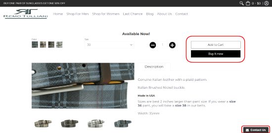 Mire la captura de pantalla de la tienda de Remo Tulliani a continuación. Los botones son de colores contrastantes y se ubican sobre la sección de descripción para que los prospectos no tengan que desplazarse por la página.