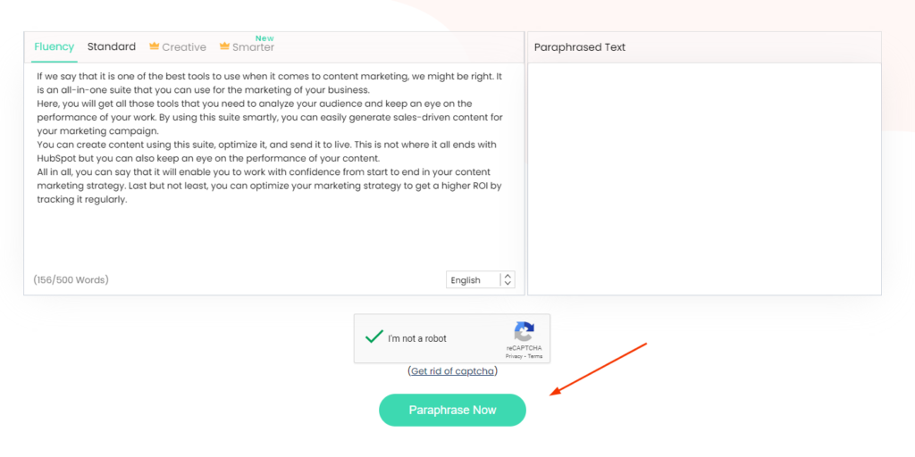 Después de pegar el contenido deseado, solo necesita hacer clic en " Parafrasear ahora ". Primero comenzará a analizar su texto y luego lo reformulará reemplazando las palabras originales.