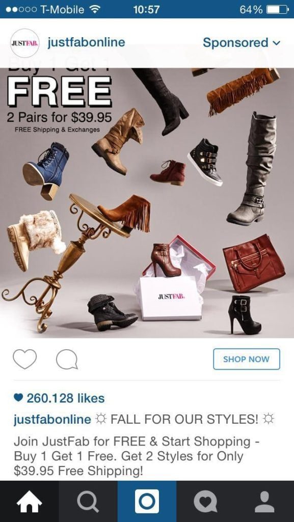 En el ejemplo anterior, es posible que el público objetivo ya siga a JustFab en Instagram o conozca sus ofertas. Un descuento proporciona el empujón que tanto necesita este grupo objetivo para comprar sus productos.