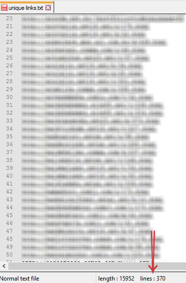 Estamos buscando vínculos de retroceso de diferentes fuentes como Google, Ahrefs, Moz, Majestic y LinkDetox. Una variedad de herramientas nos promete que obtendremos todos los enlaces. Después de recopilar los enlaces, los clasificamos para obtener solo los únicos. Para este proyecto, encontramos 370 backlinks.
