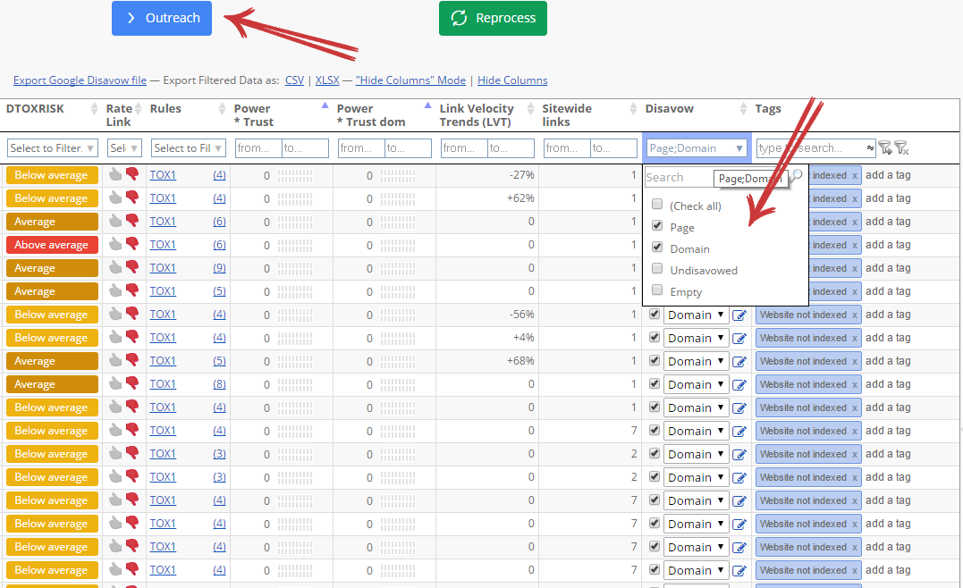 Desea eliminar solo los enlaces desautorizados, por lo que debe filtrar los enlaces desautorizados a nivel de página y dominio. El siguiente paso es hacer clic en el botón de alcance.