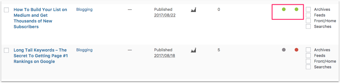 Lo que es particularmente útil es que puede ver de un vistazo si una publicación se ha optimizado para SEO:
