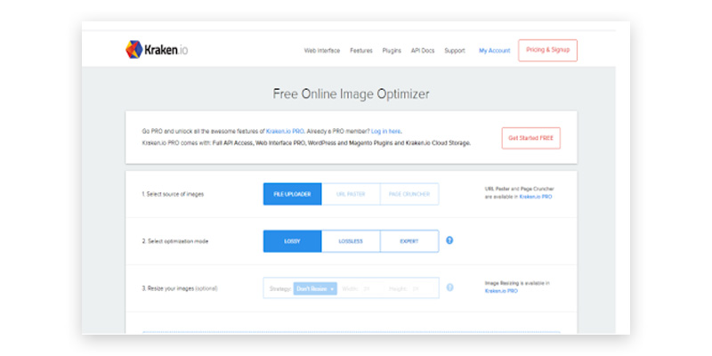 - 3. Kraken.io --- "optimice sus archivos para obtener el tamaño de archivo más bajo"