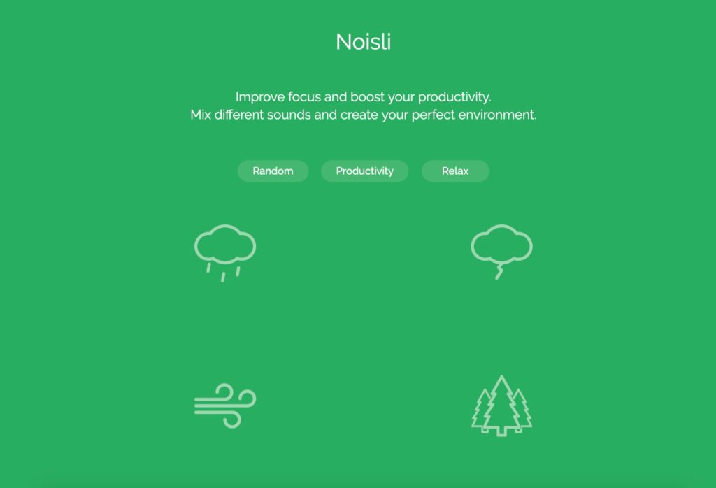 L'extension Noisli Chrome est spécialement conçue pour augmenter votre productivité et vous concentrer davantage sur la tâche à accomplir en créant des sons de fond que vous souhaitez entendre. Il peut s'agir du bruit des vagues de la mer, de la pluie qui tombe, du bruit d'une tempête, du crépitement du feu, du bavardage d'un café, du bruit du bois, du bruit blanc, du bruit du vent, etc. La collection de sons est vaste et vous pouvez combiner plusieurs sons que vous voulez. Il a également une combinaison différente de sons particulièrement adaptés à la lecture, à l'écriture ou à la concentration.