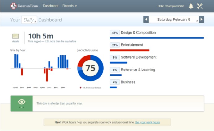 RescueTime est la meilleure extension chrome pour suivre le temps et le service qui surveille passivement ce que vous faites sur votre ordinateur et enregistre comment vous passez votre temps. L'idée est de suivre votre temps, pas nécessairement à des fins de facturation, afin que vous puissiez voir un instantané précis de votre productivité quotidienne, hebdomadaire et mensuelle.