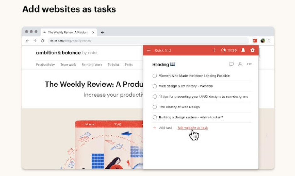 L'extension Chrome de Todoist vous permet de gérer vos tâches tout au long de la journée. C'est un service minimaliste avec un excellent design dans toutes les applications. Todoist crée la priorité des tâches, envoie les tâches par e-mail, les codes de couleur et gère la tâche avec des amis et attribue et délègue des tâches aux membres de l'équipe.