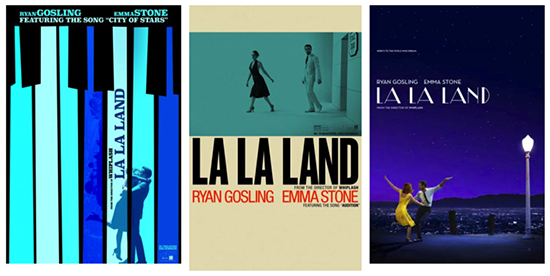 L'élément spécifique du marketing de La La Land sur lequel je veux attirer votre attention est les affiches du film.