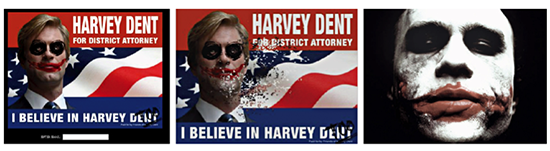 Dans le même temps, le public a vu l'image de Harvey Dent se défigurer et être remplacée par le "sourire" indubitable du Joker...