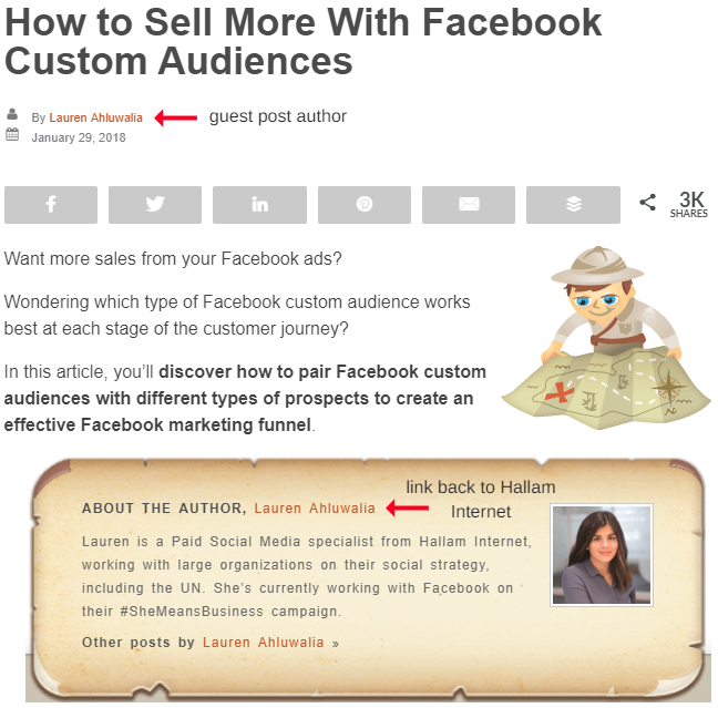 Par exemple, voici une contribution d'invité Hallam placée sur Social Media Examiner :