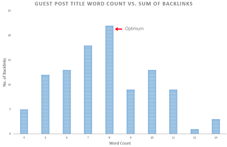 Nous avons constaté que les titres de blogs invités avec exactement 8 mots (équivalents à 40-60 caractères) augmentaient l'acquisition moyenne de liens de 110 %. (Voir Figure 1.)