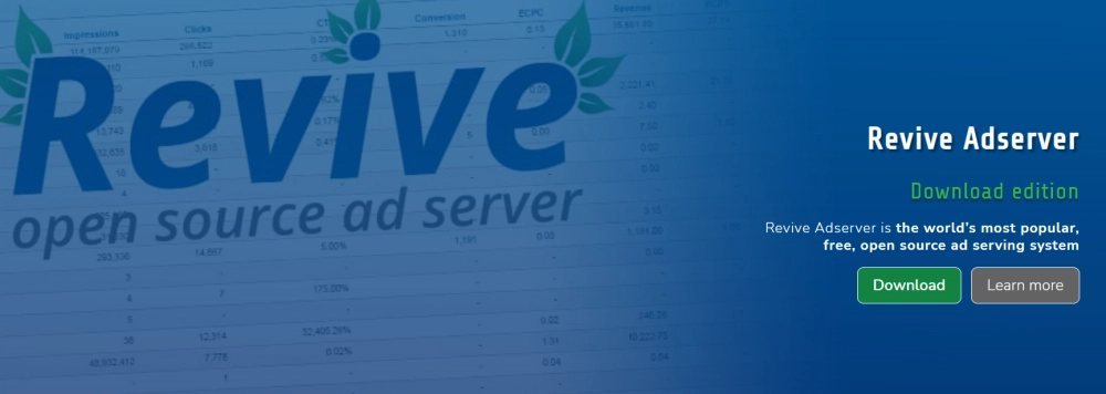 Obtenez la plate-forme de diffusion d'annonces populaire, open source et GRATUITE au monde avec Revive Adserver. Il permet aux réseaux publicitaires, aux annonceurs et aux éditeurs de diffuser des annonces sur des sites Web, des lecteurs vidéo et des applications et de collecter des statistiques telles que les clics, les conversions et les impressions.