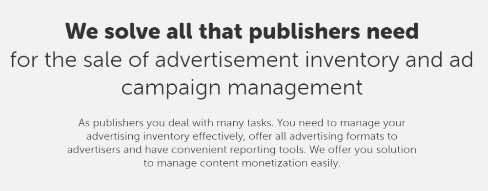 Toutes les publicités sont filtrées pour garantir que vous obtiendrez des publicités pertinentes et de haute qualité sur votre site. Vous pouvez même bloquer les publicités que vous n'aimez pas et choisir les types les mieux adaptés à vos besoins. Cela vous aidera à développer la vente, la livraison, la mesure et la planification de tout l'inventaire publicitaire numérique de vos éditeurs.