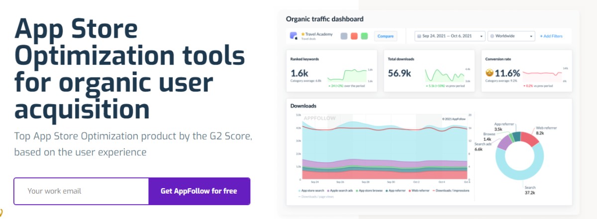 Obtenez AppFollow pour l'acquisition organique d'utilisateurs et augmentez le taux de conversion de 11 %. Cela vous aidera à multiplier par cinq le nombre d'impressions par semaine en moyenne et à élaborer une stratégie solide pour augmenter votre trafic organique de 490 %.