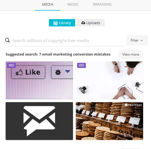Il existe également une bibliothèque musicale assez décente pour que vous puissiez choisir une piste audio pour votre vidéo. Ce qui est cool, c'est que vous pouvez rechercher la musique en fonction de "l'humeur".